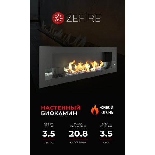 Биокамин настенный Zefire Orion 1200 со стеклом 120 см 40 см 13.1 см черный..
