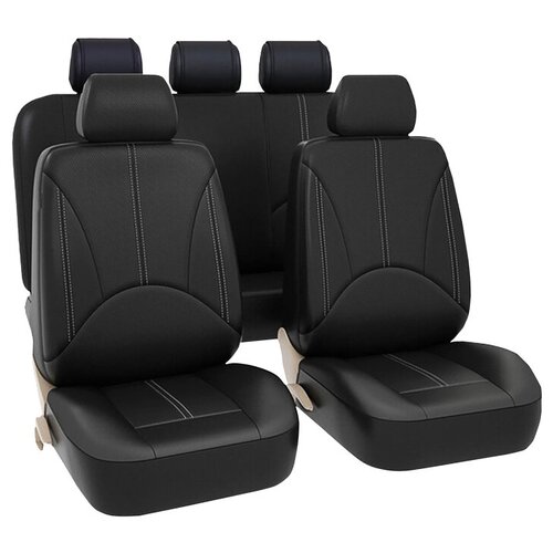 Чехлы универсальные на автомобильные сиденья,комплект ELITE, экокожа, черныебелая строчка