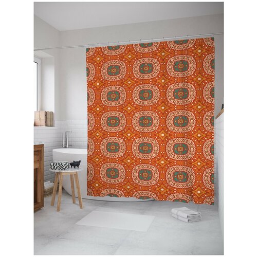 Штора водоотталкивающая для ванной, занавеска в ванную комнату тканевая JoyArty Шаблон в мягких тонах, 180х200 см