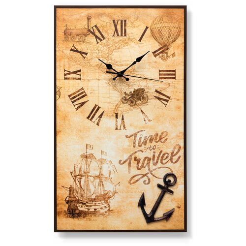 Часы настенные 3DDecor интерьерные постеры Travel Map бесшумные прямоугольные на кухню, 58х34 см