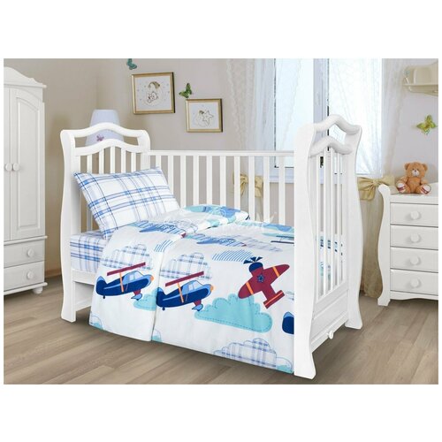 Постельное белье в кроватку поплин Полет Детская кроватка 107х140 107х140 4060)