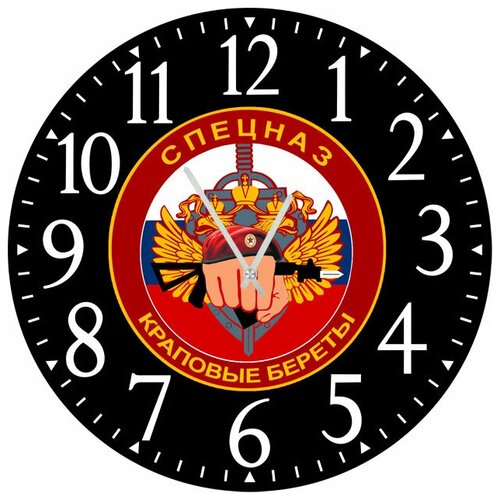 Настенные часы. Модель для современного интерьера. Механизм: Кварцевый Корпус: Дерево Размер: Диаметр 35 см Коллекция: Символика Рисунок: Спецназ краповые береты