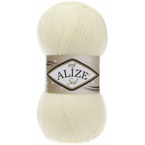 Пряжа Alize Sal simli кремовый 01), 5металлик 95акрил, 460м, 100г, 2шт