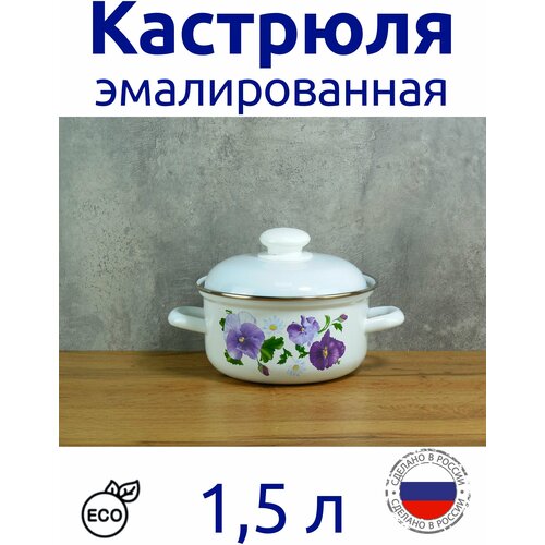 Кастрюля 1,5л эмалированная, белая с рисунком, цилиндр, с ободком