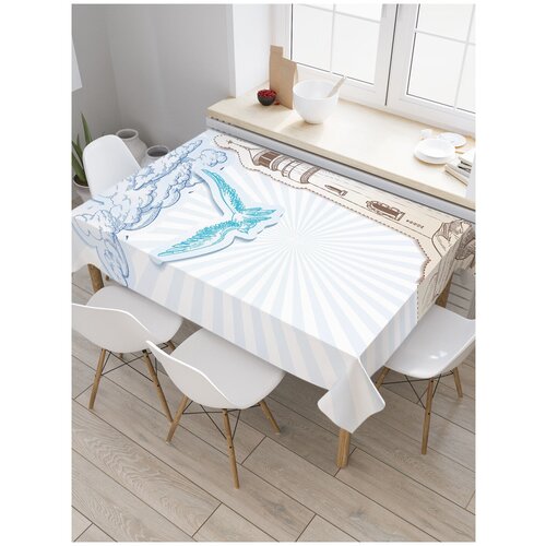 Скатерть прямоугольная JoyArty Маяк и чайка из сатена, 180x145 см