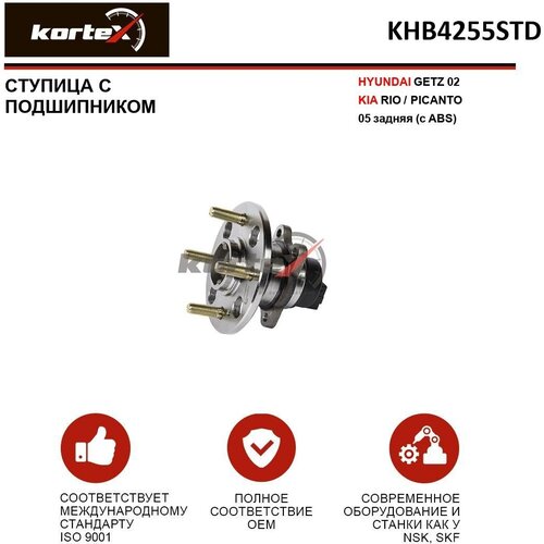 Ступица с подшипником Kortex для Hyundai Getz 02 Kia Rio Picanto 05 зад.с ABS) OEM 527501G100; 527501G101; KHB4255; KHB4255STD; VKBA6809; 52750