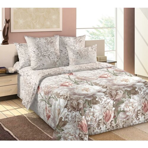 Постельное белье 1.5спальное Сатин 70х70 2 шт) Айла 3 бежевый арт. 1240Н цветы)