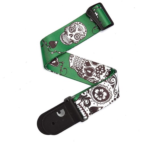 Удобный ремень стандартной ширины (5 см) с оригинальным дизайном. Изготовлен из нейлона и имеет крепкие кожаные наконечники. Описание: Ширина: 5.08 см (2") Регулируемая длина: от 35" (88,9 см.) до 59,5" (151,1 см) Материал: нейлон Кожаные наконечники Без наплечника Обеспечивает максимальное удобство при выступлении стоя Рисунок: Sugar Skulls (Сахарные головы) Цвет: Зеленый