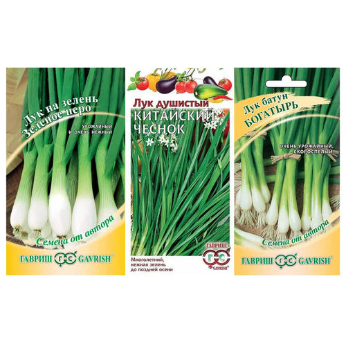 Семена Лук душистый Китайский чеснок Лук батун Богатырь Лук на зелень Зелное перо. 3 упаковки. Гавриш.