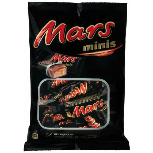 Шоколадные батончики Mars minis 182 г это минивариант известного батончика Mars, который не нуждается в представлении и знаком практически каждому сладкоежке. Великолепный слой шоколада скрывает под собой начинку из нуги и мягкой карамели, завоевавшую любовь потребителей во всем мире. Вкусный и аппетитный шоколадный батончик Mars поможет утолить голод, получить оптимистичный настрой и зарядиться силами на выполнение поставленных целей. Это прекрасное лакомство для чаепитий в течение дня дома и в офисе, а также в учебных заведениях. Им несложно перекусить на ходу и утолить свою потребность в сладком, где бы вы ни находились. Упаковка Mars мини подарит наслаждение вам, вашим гостям, друзьям и близким. Пару конфет всегда можно положить в сумку и взять с собой. Уменьшенные варианты также удобны для тех, кто ограничивает потребление сладостей, позволяя себе небольшие порции удовольствия. Упаковка, наполненная сладкими батончиками Mars, станет отличным решением для закупок на офисные коллективы, для угощения шко
