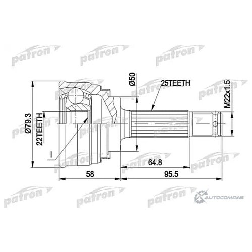 Patron PCV1047 ШРУС наружн ккт 25x50x22 MITSUBISHI: COLT 780592, GALANT 1.6 06841287, LANCER 780592, HYUNDAI: LANTRA 1.