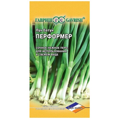 Гавриш Лук батун Перформер на зелень Голландия) 0,2 г Среднеспелый период от начала отрастания до технической спелости листьев 3540 дней) сорт. Растение с красивыми тонкими прямостоячими голубоватозелеными перьями с сильным восковым налетом, длиной 50 см. Ложный стебель без антоциановой окраски. Листья нежные, сочные, слабоострого вкуса. Средняя масса растения 55 г. Сорт устойчив к листовым заболеваниям и неблагоприятным условиям выращивания. Рекомендован для использования зеленых листьев в свежем виде и замораживания. Урожайность при одноразовой уборке 2,5 кгм. Выращивают прямым посевом в открытый грунт ранней весной, в рядки, на глубину 1,52,0 см. Расстояние между рядками 30 см. Для непрерывного получения зелени посевы повторяют с интервалом в 2 недели срок последнего посева 15 августа).
