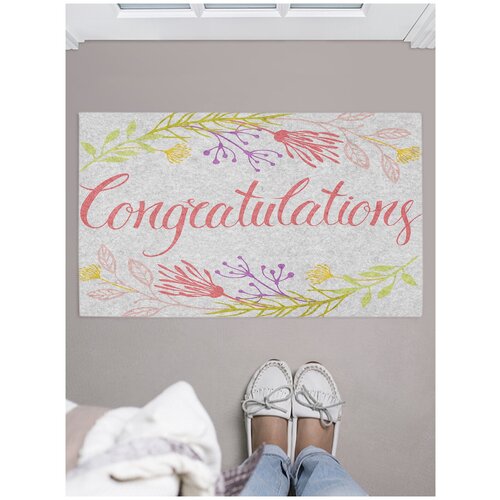 Придверный коврик в прихожую JoyArty Цветочное поздравление для обуви, на резиновой основе, 75x45 см