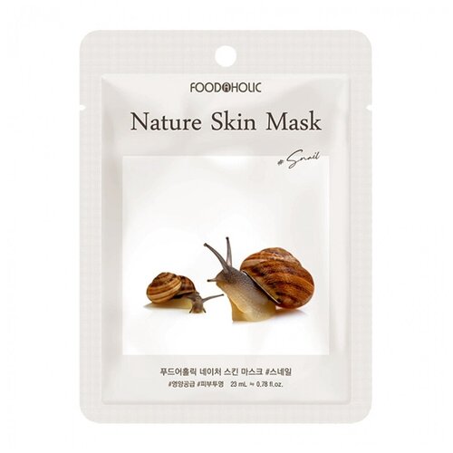 FoodaHolic Snail Natural Skin mask это тканевая маска с экстрактом улиточной слизи. Она интенсивно обогащает кожу влагой и полезными веществами, ускоряет обмен веществ, обновляет клетки и омолаживает лицо. Маскасалфетка состоит из нетканого полотна, выкроенного по форме лица с прорезями для носа, глаз и губ. Салфетка пропитана эссенцией для интенсивного ухода за кожей. Уникальная формула эссенции содержит полезные вещества, нежная и мягкая основа свободно ложится на кожу, легко впитывается. Удобная форма маски позволяет ей плотно прилегать к коже, давая возможность двигаться и заниматься повседневными делами. Маска находится в индивидуальной герметичной упаковке, что позволяет использовать ее по мере надобности и предотвращает проникновение внутрь микробов и вредных бактерий. Улиточный муцин активно способствует синтезу собственного коллагена и эластина, замедляя признаки старения и продлевая молодость кожи; эффективно снимает воспаления, раздражения, успокаивает кожу, убирает следы усталости и стрессов.