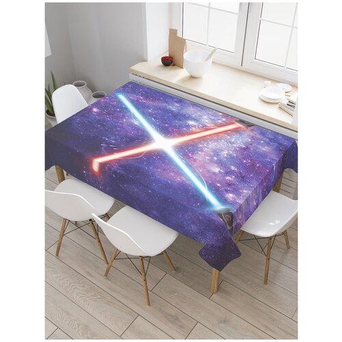 Скатерть прямоугольная JoyArty Космический бой из сатена, 180x145 см