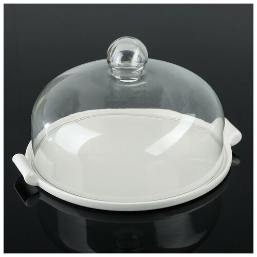 Подставка для торта со стеклянной крышкой и керамическим блюдом с ручками. Крышка изготовлена из натриевогоизвесткового стекла с низким содержанием металлов, стекло абсолютно прозрачное, бесцветное и обладает повышенным блеском. Крышка ударопрочная и термостойкая, устойчива к вредному воздействию воды и не мутнеет после длительного использования.Подставка изготовлена из усиленной керамики, что придает изделию ударопрочность и износостойкость. Изделие имеет высокие бортики, что позволяет плотно фиксировать крышку и даже в случае наклона, она не соскользнт и не испортит красивую выкладку.Такую посуду можно использовать в ресторанной выкладке десертов и деликатесов, они не впитают посторонние запахи. Помимо тортов, пирожных и различных деликатесов блюдо подойдет для подачи блинов, сыров и фруктов, а так же для хранения хлебобулочных изделий.Ваши кулинарные шедевры будут смотреться еще аппетитнее на такой подставке!Можно мыть в посудомоечной машине.Размеры блюда:Общие габариты 312819 смКрышка купол) 262618 смБлюдо подставка) 31283,5 см