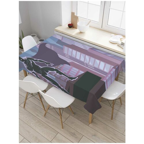 Скатерть прямоугольная JoyArty Супермен охраняет город из сатена, 180x145 см