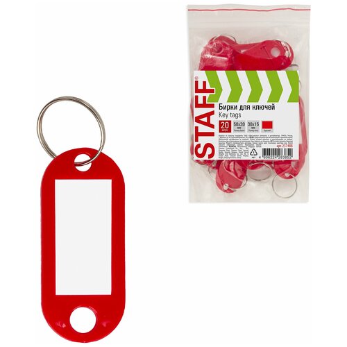 Бирки для ключей комплект 20 ШТ длина 50 мм инфоокно 30х15 мм красные STAFF 237488 89