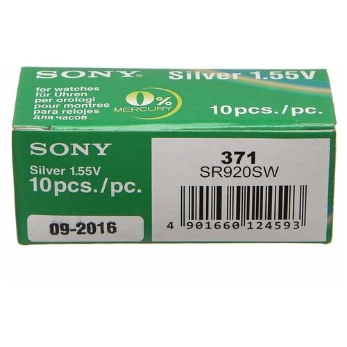 Батарейка Sony 371 SR920SW), в упаковке: 10 шт.