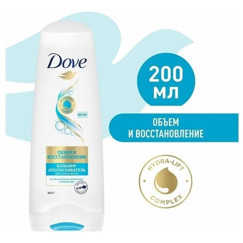Серия Dove Объем и восстановление сделает ваши волосы в два раза объемнее, не утяжеляя их. Бальзамополаскиватель работает в 2х направлениях, чтобы наполнить жизненной силой тонкие и ослабленные волосы. Уникальная невесомая формула с комплексом HydraLift придает волосам дополнительный объем от корней и мягко питает их. Действует на поверхности волоса, мгновенно разглаживая его, поддерживает необходимый уровень питания и дополнительного увлажнения. Ваши волосы готовы к укладке и выглядят гладкими, объемными и красивыми! Для наилучшего эффекта используйте бальзамополаскиватель Dove каждый раз после мытья волос шампунем Dove Объем и восстановление. Любимый продукт также представлен в объеме 350 мл. Dove не проводит тесты на животных, и имеет аккредитацию организации рета. по результатам инструментального теста Unilever по сравнению с волосами до мытья в линейке продукции Dove в России