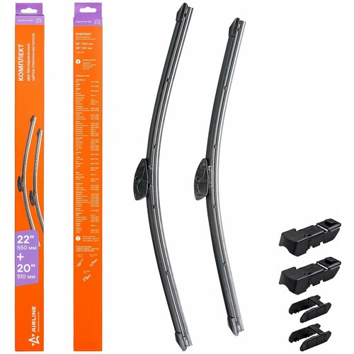 Щетки стеклоочистителя Airline 550510мм 2220 дюймов бескаркасные для ам BMW X3 0411, Hyundai Sonata 0104, 2 шт. 3 типа адптера AWBBK550510K