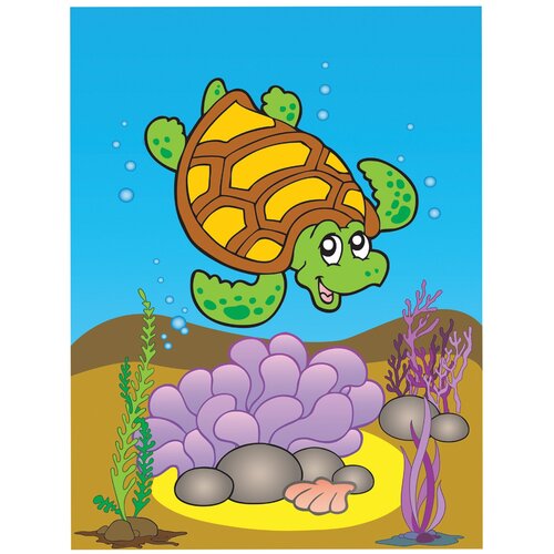 Раскраска по номерам А4, юнландия черепашка, С акриловыми красками, на картоне, кисть, 661597 661597