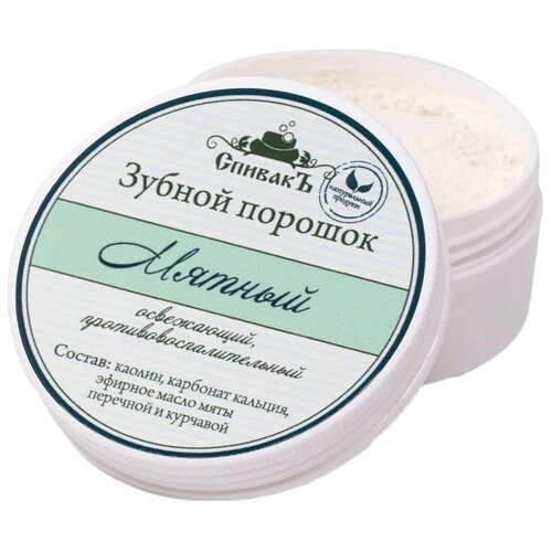 Зубной порошок известен с давних времен и снова набирает популярность как натуральное средство для очистки зубов. Мягкая практически невесомая консистенция позволяет бережно очистить налет, нормализовать кислотнощелочной баланс во рту и отполировать поверхность зубов. Карбонат кальция в составе укрепляет зубную эмаль. Каолин, благодаря своим адсорбционным свойствам, снижает риск развития кариеса, а также размягчает зубной камень, снижает кровоточивость десен и позволяет отбеливать зубы. Эфирное масло мяты освежает дыхание и оказывает антибактериальное и противовирусное действие.