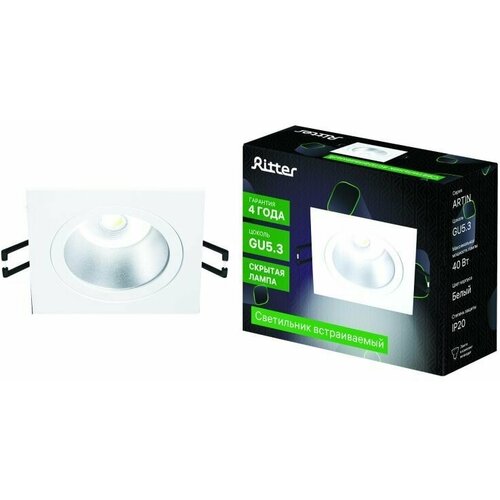 Светильник встраиваемый Ritter Artin, 1 лампа, цоколь GU5.3, 93х93х35мм, цвет белый, 51417 6
