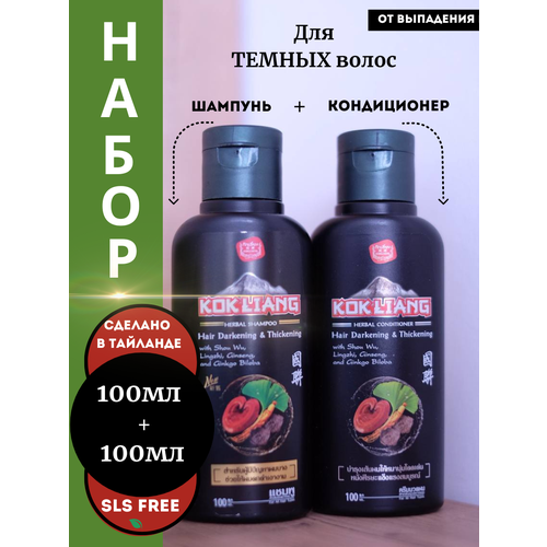 Kokliang Набор шампунь и кондиционер бессульфатный против выпадения для темных волос тайский травяной, 100 мл 100 мл
