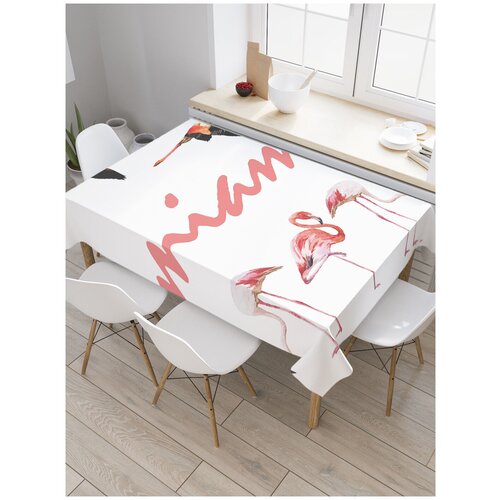 Скатерть прямоугольная JoyArty Розовые фламинго из сатена, 120x145 см