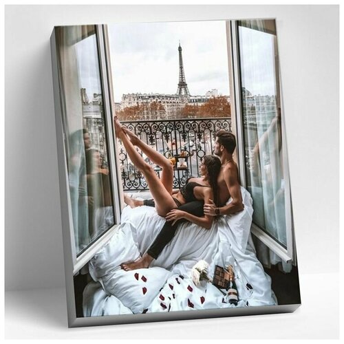 Картина по номерам на холсте с подрамником Molly Утро в Париже, Раскраска 40x50 см, Пара Влюбленные Объятия Любовь и романтика