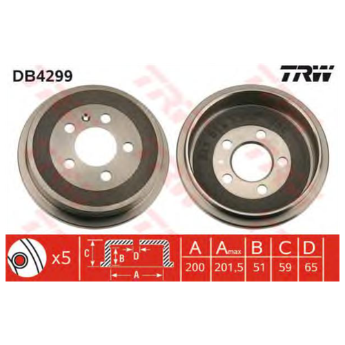 Комплект тормозных барабанов TRW DB4299 200x51 для Audi, SEAT, Skoda, Volkswagen 2 шт.)