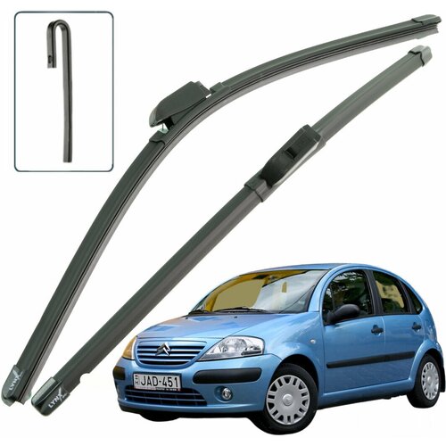 Дворники Citroen C3 1) F Ситроен С3 хэтчбек 5 дв 2001 2002 2003 2004 2005 Щетки стеклоочистителя бескаркасные 600мм500мм кт 2шт