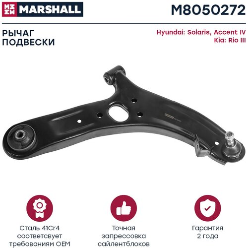 Marshall Autoparts B.V. нидерландский производитель запчастей и комплектующих для коммерческого и легкового транспорта под собственным брендом MARSHALL. Все запчасти MARSHALL спроектированы и произведены на современном оборудовании с расчтом на суровые, бескомпромиссные условия эксплуатации, что позволило MARSHALL занять и удерживать лидирующие позиции на рынке запчастей для коммерческого транспорта на протяжении многих лет.Параметры: Максимальная длина 0,35Кроссномер: 0525BLR1Подходит для следующих автомобилей: Hyundai: Solaris, Accent IV; Kia: Rio IIIOEM: 545011R000; 545014L000