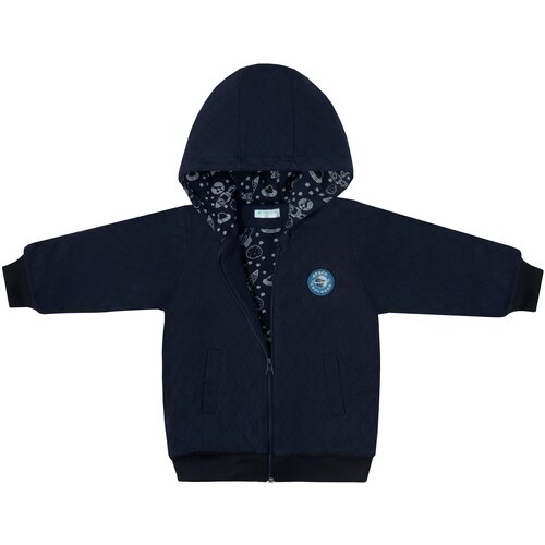 Толстовка из коллекции Космос для мальчиков на молнии , с карманами и капюшоном, выполнена из натурального плотного хлопка с утеплением синтепон) . Элегантная стеганая толстовка куртка с длинным рукавом цвета ночного неба и подклад с рисунками на космическую тематику звезды , планеты, ракеты ) не оставят без внимания вашего малыша . Подходит для температурного режима от 43;5 до 43;15. Удобный замокмолния позволяет быстро снять куртку или просто расстегнуться, если стало жарко. Манжеты на рукавах фиксируют изделие и надежно защищают от прохладного воздуха, а также от попадания песка из песочницы или посторонних предметов под куртку. Наши изделия полностью из натуральных материалов, устойчивы к изнашиванию, не теряют свой цвет даже после многочисленных стирок. В толстовке малышу будет комфортно в садике и на прогулке в прохладный день.Прекрасно сочетается с любыми джинсами или брюками.