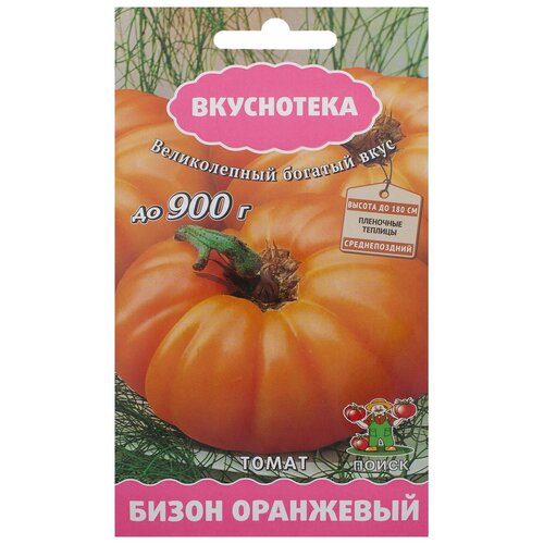 Страна производства: РоссияЧастота полива среднее значение): 2 раза в неделюДопустимая температура C): От 15 до 25Тип удобрения: УниверсальныйТип растения: Плодовое растениеРасстояние между растениями см): 40Период сбора урожая месяц): Июль, Август, СентябрьТребуется пересадка: ДаТип упаковки: ПакетикЦвет плодов: ОранжевыйТип продукта: Семена овощных культурПериод посадкипосева в открытый грунт месяц): МайРод растений: ПомидорТип продукта локальный): Семена овощных культурЦвет листвы: ЗеленыйЧастота подкормки среднее значение): 1 раз в неделюВсхожесть ): 80Сорт: Бизон оранжевыйВысота растения max см): 170200Долговечность: Однолетнее растениеМесто посадки: СолнцеНорма высева: 15u201320 гмГлубина посева см): 1Марка: поискВысота товара в индивидуальной упаковке см): 0.1Глубина товара в индивидуальной упаковке см): 14.9Ширина товара в индивидуальной упаковке см): 8Вес товара в индивидуальной упаковке кг): 0.004Количество в наборе: 1Семена Томат оранжевый БизонТомат оранжевый Бизон относится к среднеспелым. Кусты высокорослые, мощные, слабооблиственные, нуждаются в подвязке и формировании. Помидоры очень крупные, мясистые, с прочной кожицей и сочной ароматной мякотью, могут набирать массу до 900 г. Пригодны для употребления в свежем виде и приготовления горячих блюд.