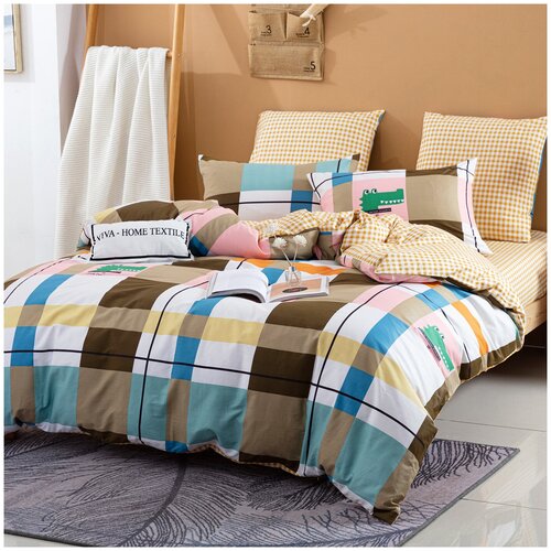 2 спальный 180х215 Постельное белье Делюкс Сатин 100 хлопок простыня на резинке, пододеяльник и наволочки на молнии)