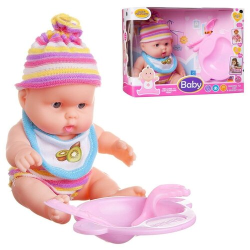 Пупс 20см в наборе с аксеcсуарами в полосатой шапочке в коробке
