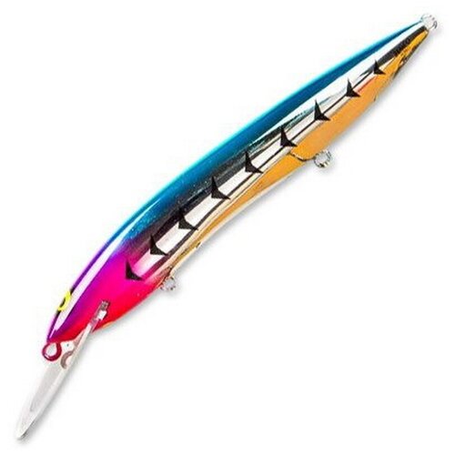 Halco Sorcerer 125DD43;STD, он же 34;Волшебник34;. Данная приманка обладает продолговатым телом 125 мм) достаточно интересной формы. А благодаря своему внушительному весу в 20 гр, эта приманки обладает действительно 34;волшебными34; полетными характеристиками. Воблер Halco Sorcerer 125DD43;STD относится к плавающему типу приманок глубоководного спектра действия. Для данной модели рабочий горизонт облова составляет свыше четырех метров. А наличие фирменной запатентованной лопасти Halco39;s Bullet proof дает возможность стремительно набирать воблеру заданную глубину. К тому же исключительная надежность этой лопасти убережет ее и воблер от повреждения при возможных столкновениях с подводными препятствиями. Воблер Halco Sorcerer 125DD43;STD разрабатывался специально для ловли хищника на дорожку, но также может неплохо работать на кастинге. Во время игры тело приманки колеблется из стороны в сторону, при этом также создавая небольшой шум и вибрацию. Благодаря специфической хвостовой части воблера Halco Sorcerer 125DD43;STD можно легко избежать зацепов о неровности дна, всего лишь ослабив вовремя леску. Для того чтобы добиться максимальной скорости проводки при троллинге, можно снять центральный крючок.