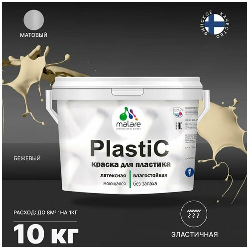 Краска акриловая Malare PlastiC для детской влагостойкая моющаяся матовая бежевый 10 кг