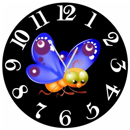 Настенные часы. Модель для современного интерьера. Механизм: Кварцевый Корпус: Дерево Размер: Диаметр 40 см Коллекция: Kids Рисунок: Ползущая стрекоза