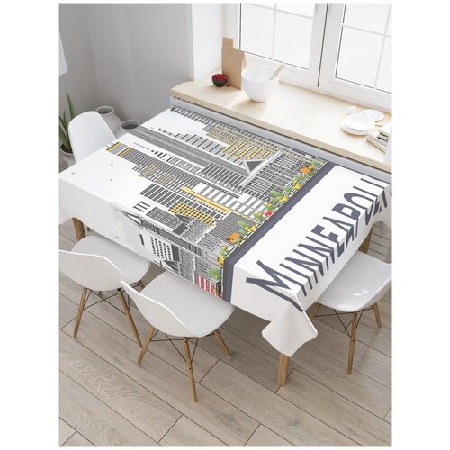 Скатерть прямоугольная JoyArty Высотки Миннеаполиса из сатена, 180x145 см