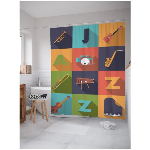 Штора занавеска) для ванной JoyArty Джазовая композиция из сатена, 180х200 см с крючками