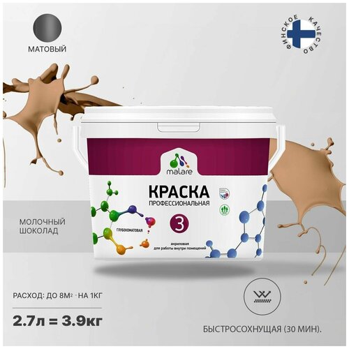 Краска акриловая Malare Professional 3 для стен и потолков для детской влагостойкая матовая молочный шоколад 2.7 л 3.9 кг