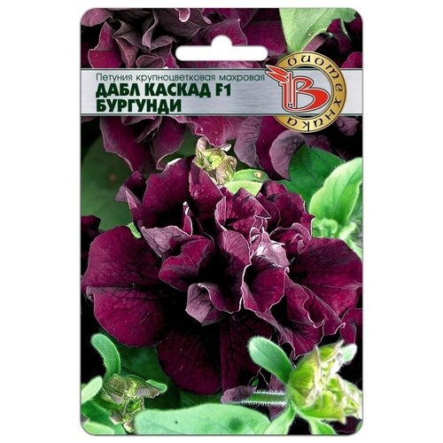 Петуния крупноцветковая махровая Дабл Каскад F1 БургундиЦветки махровые, с сильно гофрированными лепестками.Цветущее растение имеет необыкновенно эффектный вид.Растения данной группы используются в оформлении клумб, вазонов, балконных ящиков.Компактный куст, высотой 1215 см, с огромными цветками 1013 см в диаметре.Высадка: посев на рассаду производится с февраля по март.Семена высеваются в рассадные ящики на поверхность подготовленного стерильного грунта. Семена грунтом не присыпаются.Прорастание: всходы появляются на1420день, при температуре проращивания 1820С.Пикировка: с марта по апрель проводят пикировку сеянцев в кассеты 3x3 см.Температура выращивания 1517С. С апреля по май производится пересадка в горшки диаметром 9 см. В горшках доращивание производится при температуре 1216С. Такая температура позволяет получить хорошо развитую коренастую рассаду. Возраст рассады перед высадкой на постоянное место должен составлять три месяца.Грунт: должен быть легкий, с высоким содержанием питательных веществ и иметь значение pH 5,56.Высадка в грунт: производят, когда полностью минует угроза заморозков.Удобрение: петуния требовательна к содержанию питательных веществ. Подкормки проводятся комплексным минеральным удобрением, содержащим микроэлементы.