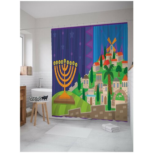 Штора водоотталкивающая для ванной, занавеска в ванную комнату тканевая JoyArty Ночь Хануки, 180х200 см