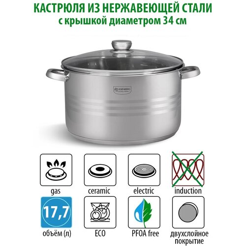 Кастрюля из нержавеющей стали с крышкой 34 см 17.7 литров
