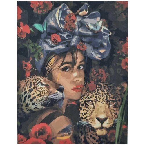 Картина по номерам Девушка с леопардами холст на подрамнике 40х50 см