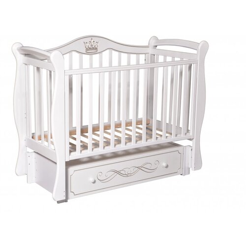 Детская кроватка для новорожденных Антел Джулия 111 с универсальным маятником поперечныйпродольный),ящиком, съемной стенкой, цвет Белый
