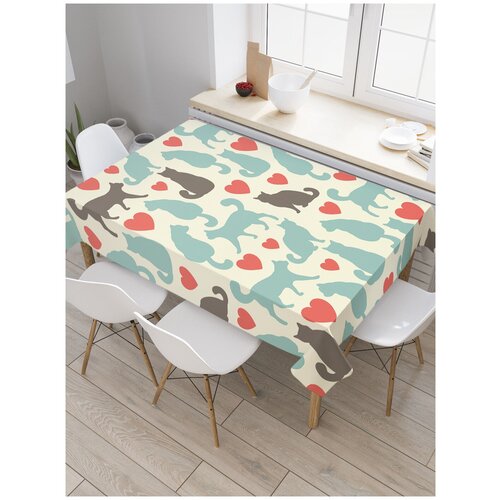 Скатерть прямоугольная JoyArty Симпатия кошек из сатена, 180x145 см